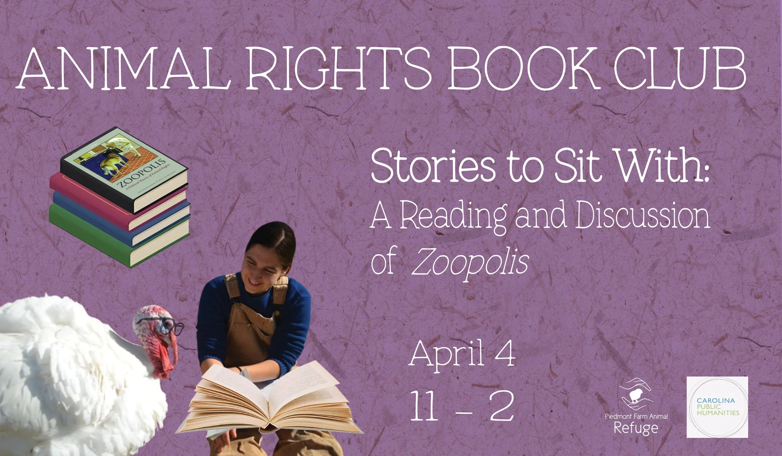 This free event includes time to read with our animal residents, a discussion, and a free lunch from Pure Soul.