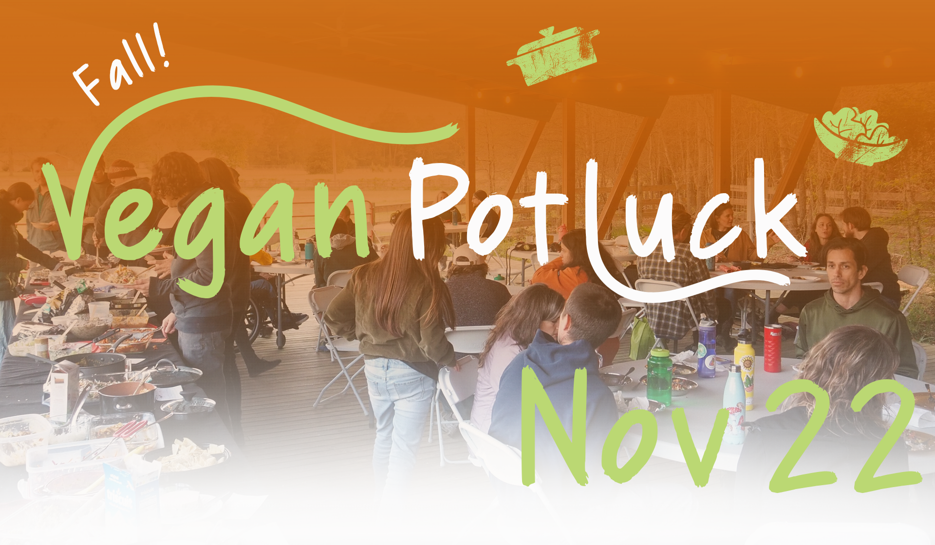 Join us for a FREE vegan potluck at Piedmont Farm Animal Refuge in the Pavilion on Saturday, November 22, from 6-8:30pm. Meet like-minded people and share tasty food. Board games are available on-site, but please feel free to bring any games from home to share.