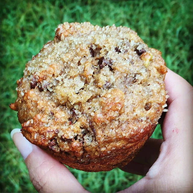 In a large bowl, mash the bananas. Add the yogurt, maple syrup, baking powder, baking soda, cinnamon and salt, and beat with a wooden spoon until the batter is smooth and free of most lumps (a few small lumps of banana are okay). Gently fold in the spelt flour and chocolate chips. Portion the batter into your muffin tin cups in 1/4 cup increments – if any batter remains, distribute evenly. Sprinkle 1/4 to 1/2 teaspoon of the turbinado sugar over the top of each muffin and bake for 20-25 minutes. The muffins are done when they spring back when touched.