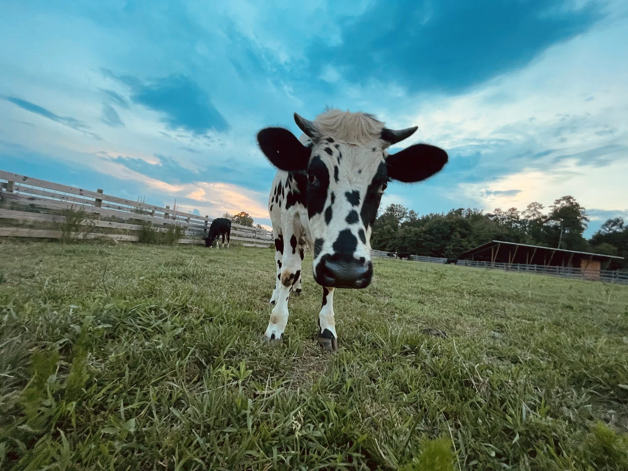 Teddy and Atlas were among more than 200 farmed animals that were found in terribly neglected condition at a cruelty case in Garner, NC, in 2023. Many of the animals were found emaciated or even deceased on the property. Teddy and Atlas were both put under quarantine and emergency medical care when they first arrived at the Refuge. After not gaining weight as much and as fast as expected, they both began to be bottle-fed daily by animal care staff. They are now looking better and better each day as they begin to experience the lives they should have always had — lives full of care and love at their forever home.